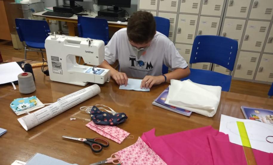Alunos do Colégio TOM, de Marmeleiro, confeccionam máscaras para doar a famílias da escola 01/07/2020 - 13:20