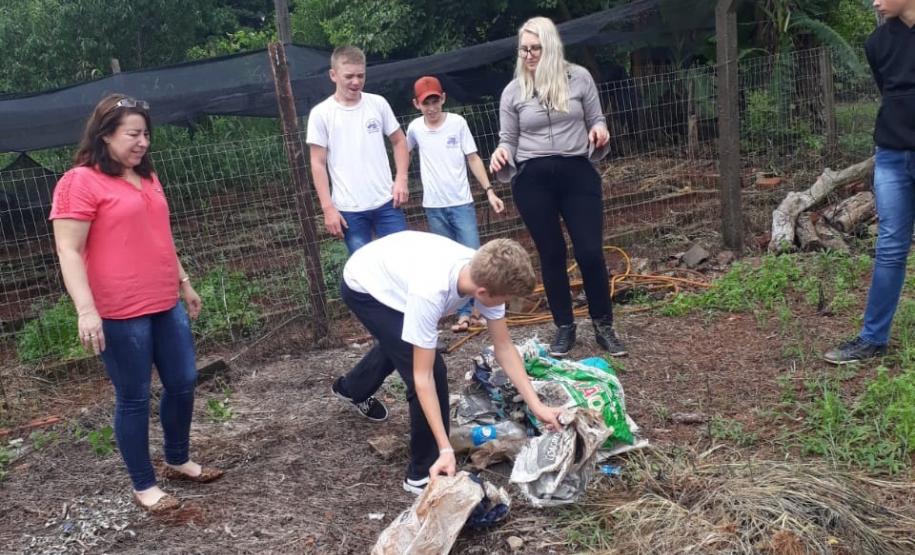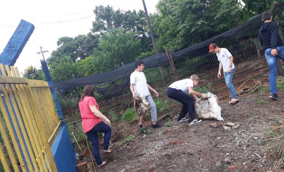 Em seguida, para fazer a coleta foi separado por turmas e cada professor ficou responsável por uma atividade: o 7º ano coletou recipientes no quarteirão entorno da escola (rua. pátio e pavilhão); o 8º ano ficou responsável pelo campo de futebol, seus arredores e fundo da escola; o 9º ano e pais presentes ficaram com a remoção de entulhos e revitalização através da poda de árvores, ervas daninhas, com aterramento das áreas de colocação de pedras britas. A horta também passou por vistoria e esta em permanente vigilância para que não haja criadouro do mosquito.